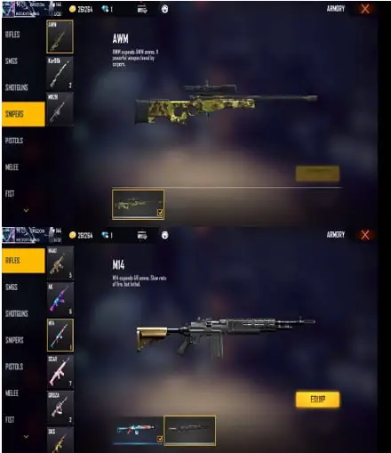 Talking about the AWM guns in Free Fire, this gun can give you damage even on heavy bodies. On the other hand, the players should have the advanced model of the M14 gun which can kill the enemy even in one shot.