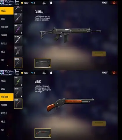 The Parafal is the recent additional in-game item that any Free Fire player can carry for long-range combat and will get no recoil. The M1887 gun is also one of the best guns in Garena Free Fire because the players can use this for long-range combat even without using any skin to increase the power.