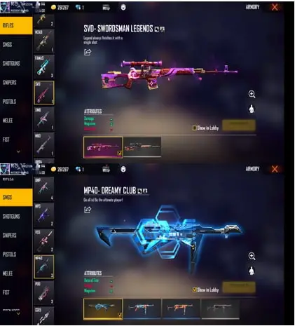 The abilities of these guns are the same. No matter whether you are using the skins with these guns to boost the power, these guns are amazing even without any skins. By using a single tap, you will be able to release the high damage with these guns which is enough to kill the enemy even in one shot.